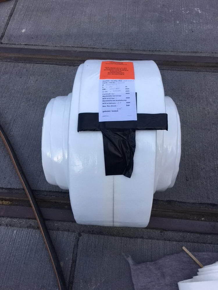 ....Der Flexi SF-Tube ist bis zu 90° bogengängig und kann zur Warm- oder Kaltaushärtung nach Verfahrensvorschrift der bodus gmbh eingesetzt werden. Bei der Dampfaushärtung kann der Liner mit bis zu max. 80 °C beaufschlagt werden. Weiterhin kann der Flexi SF-Tube problemlos für 2-Dimensionswechsel verwendet werden. Der Liner ist vor freier radialer Expansion (offene Schächte, Rohrende, usw.) zu schützen. ..The Flexi SF-Tube can be bent up to 90° and can be used for hot or cold curing according to the process instructions of bodus gmbh. For steam curing, the liner can be exposed to a maximum of 80 °C. Furthermore, the Flexi SF-Tube can be used for 2-dimensional changes without any problems. The liner must be protected from free radial expansion (open manholes, pipe ends, etc.). ....