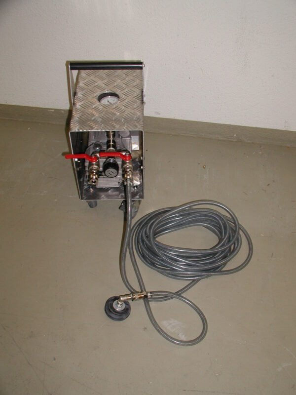 ....Mobile und kompakte Vakuumpumpe zum Evakuieren von Luft in Schlauchlinern. ..Mobile and compact vacuum pump for evacuating air in hose liners. ....